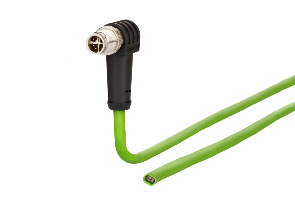 M12 Industrial Ethernet cable, X-coded, M12 plug angled - free line end, coding at 315°, PUR
