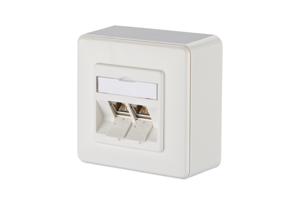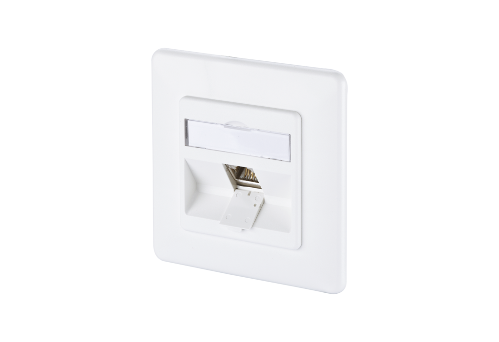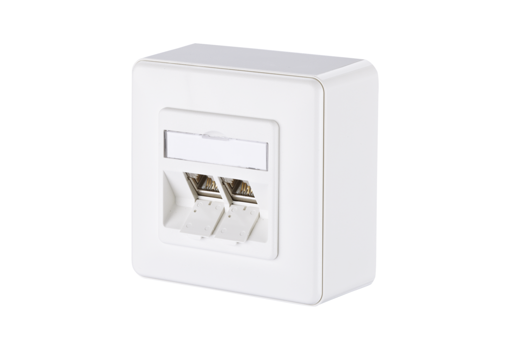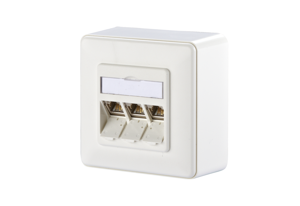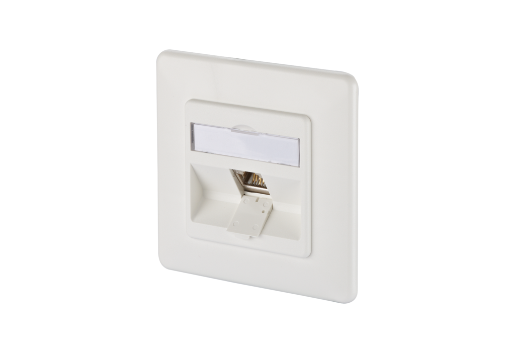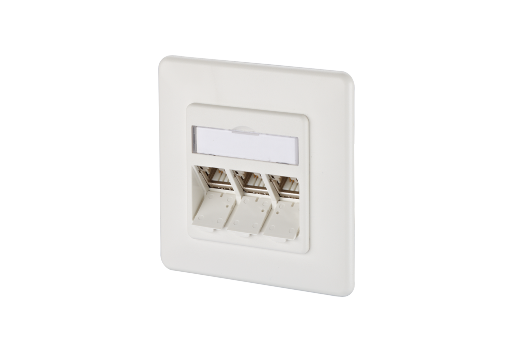 Modular wall outlet for the construction of a passive network infrastructure with the highest quality requirements. The junction box is suitable for connecting telephones up to 10 Gbit networks and power supply with PoE with up to 90W. The very robust, nickel-plated zinc die-cast module, which consists of only two parts, can be connected by the installer very easily and in a very short time without any special tools. In addition to the permanent quality control during production, independent test laboratories confirm the very good quality of the individual modules with various certificates. The wall outlets are supplied in retail-friendly, separable cardboard packaging with 10 pieces each.