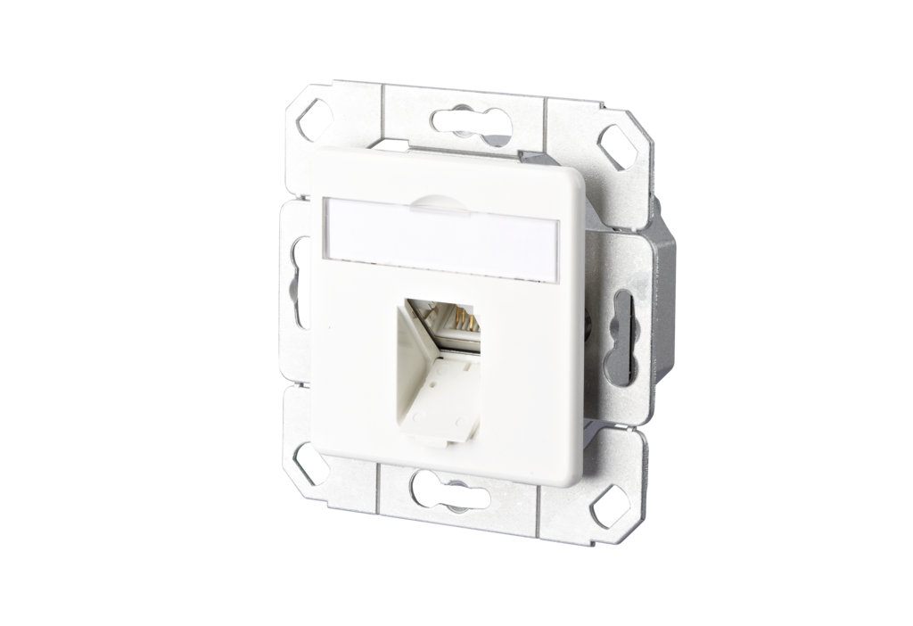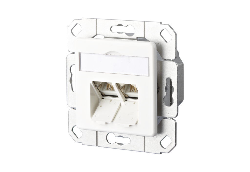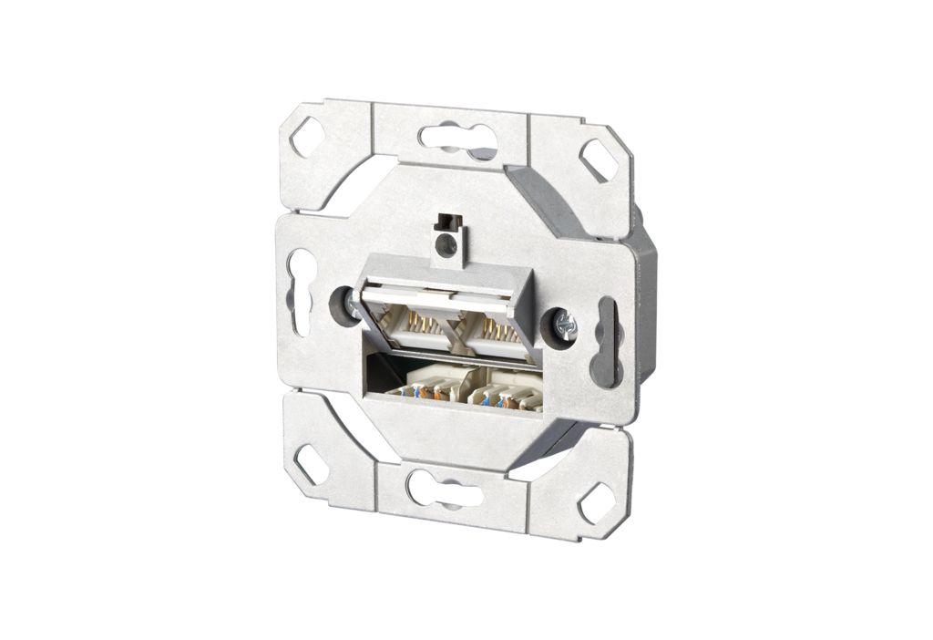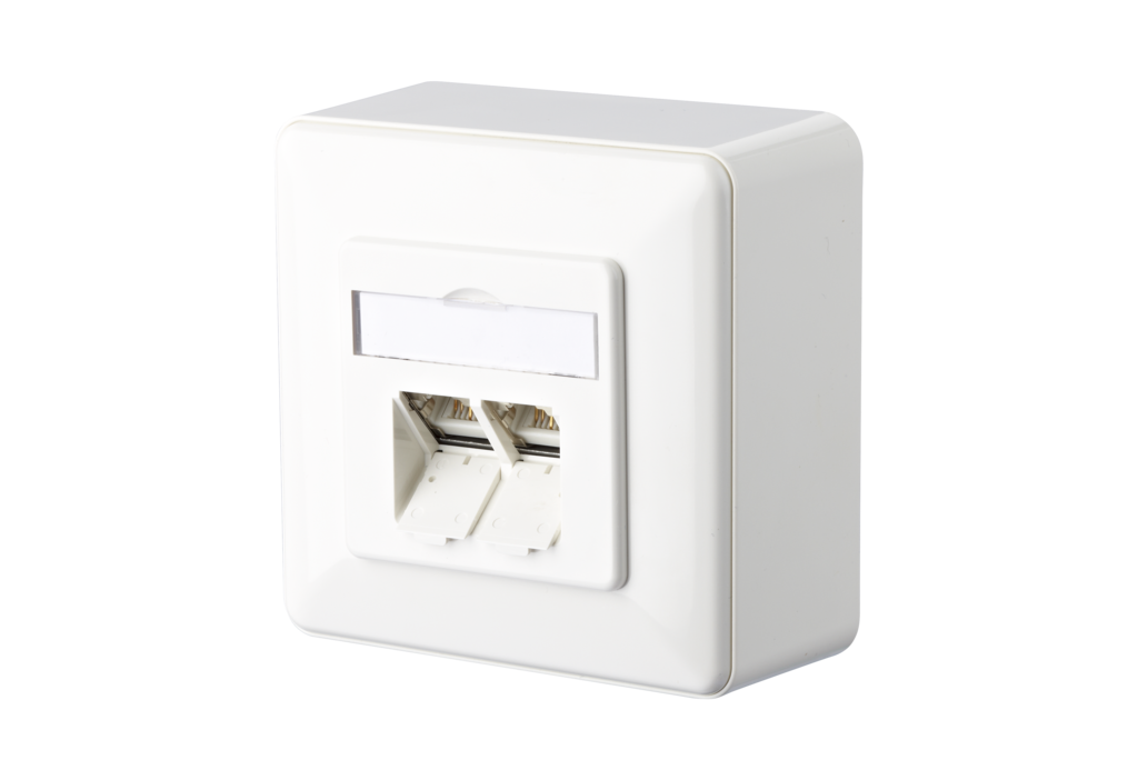 Compact wall outlet for the construction of a passive network infrastructure with the highest quality requirements. The junction box is suitable for connecting telephones up to 10 Gbit networks and power supply with PoE with up to 90W. The installer can connect the very robust zinc die-cast wall outlet very easily and in the shortest possible time with an LSA installation tool without errors. In addition to the permanent quality control during production, independent test laboratories confirm the very good quality with various certificates. The wall outlets are supplied in retail-friendly, separable cardboard packaging with 10 pieces each.