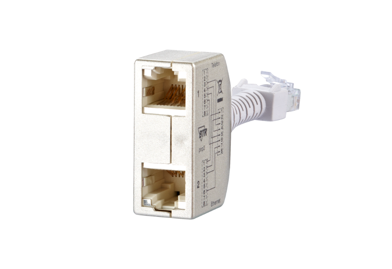 Nous proposons différents adaptateurs (adaptateurs de partage de câbles, UAE, RNIS ou TAE) comme accessoires pour connecteurs et jacks du câblage réseau.