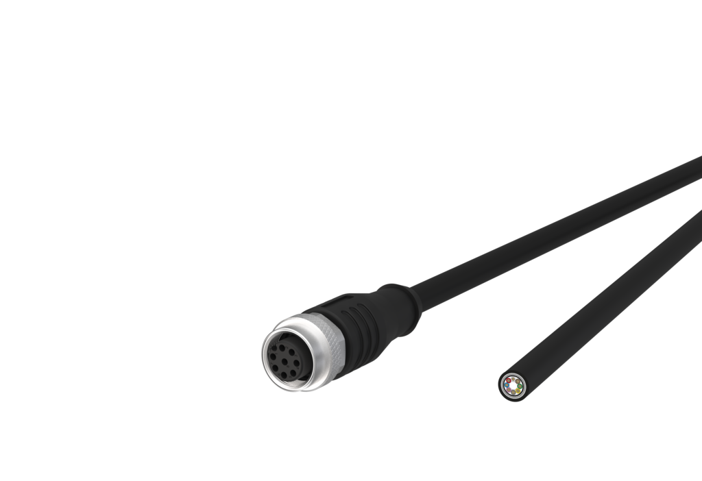 Câble de capteur/actionneur M12, codage A, M12 connecteur femelle droit - extrémité ouverte, blind, 8 pôles, PUR-C
