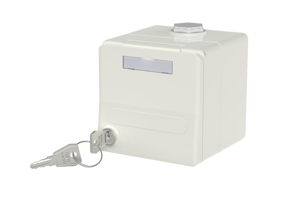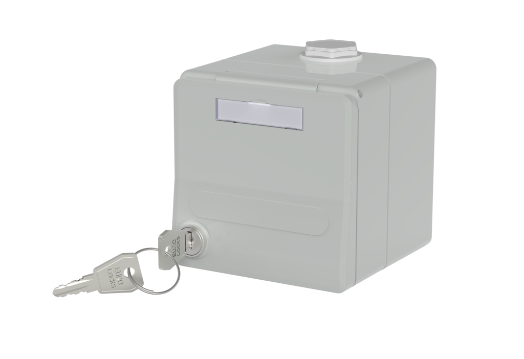 - Mit zwei Schlüsseln und gleichschließendem Schloss (gleiche Schlösser und Schlüssel), Gehäuseklappe plombierbar