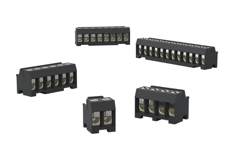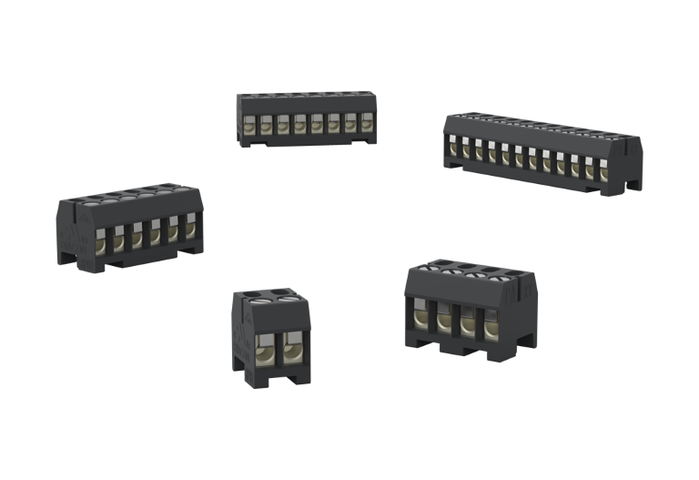 Die Schraubklemmen sind geeignet für Volldrähte und mehrdrähtige Litzen mit Aderendhülsen. Je nach Bauform für Anschlussquerschnitte von 0,08 – 4 mm². Schraubklemmen ermöglichen den Anschluss von zwei Leitern in einer Klemmkammer und zeichnen sich durch eine gute Kontaktqualität bei geringer Erwärmung aus.